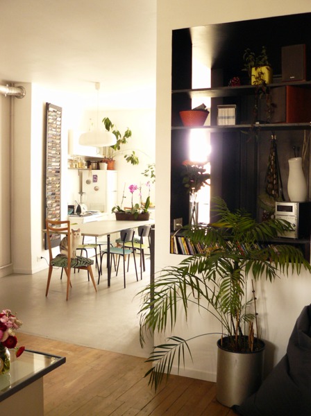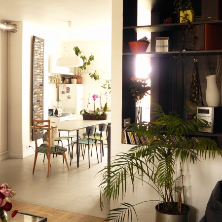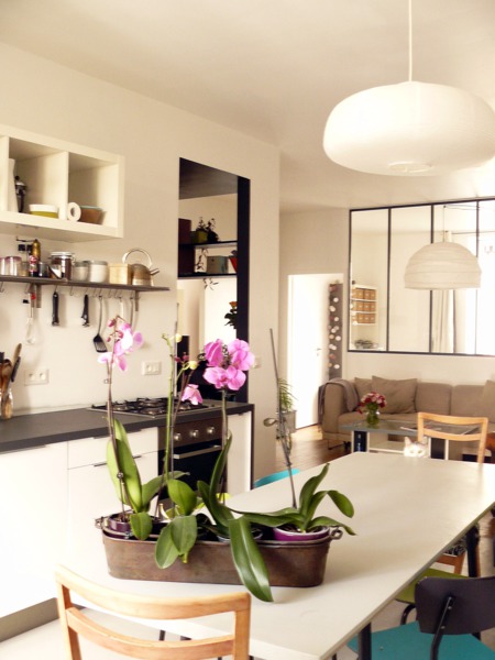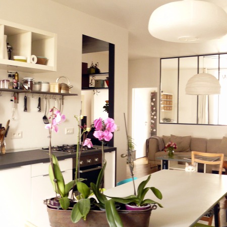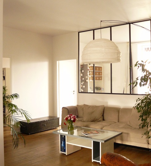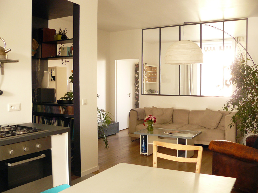 La verrière pourra être démontée au besoin si les prochains occupants veulent à nouveau bénéficier d'un grand séjour et d'une seule chambre, le plafond et le parquet filant sous la cloison.