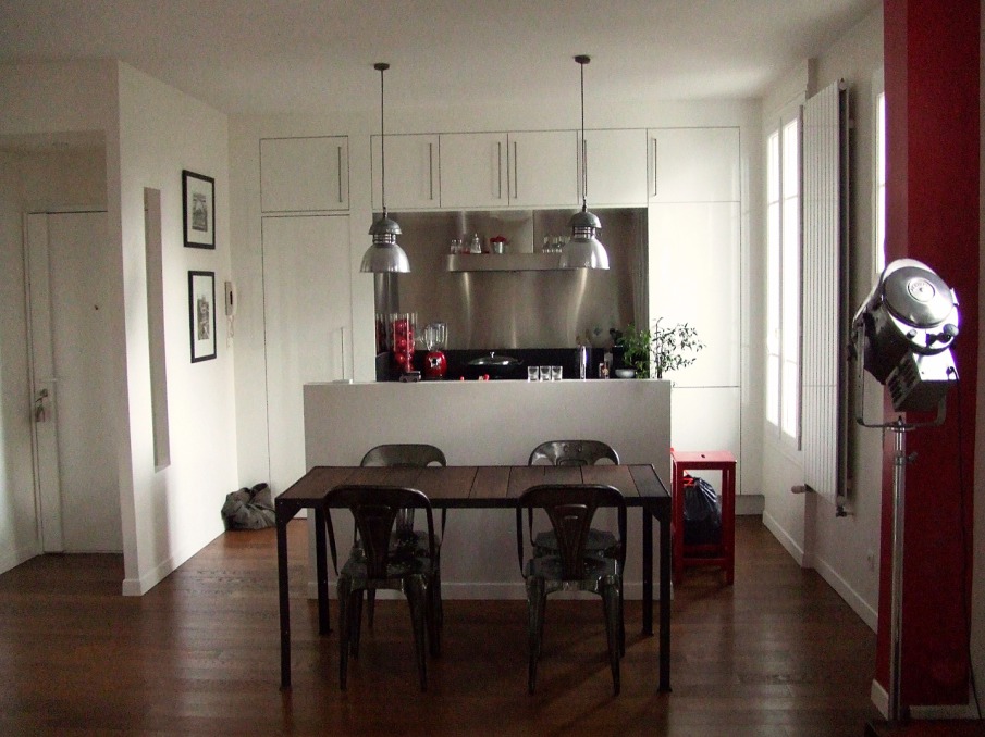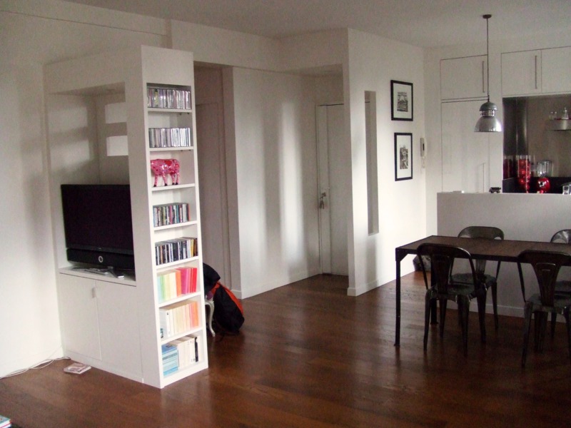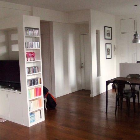 Les nouveaux acquéreurs de cet appartement voulaient une grande pièce de vie complètement ouverte. Couple avec 2 enfants, il existait une réelle volonté de séparer l'espace dédié aux parents afin de