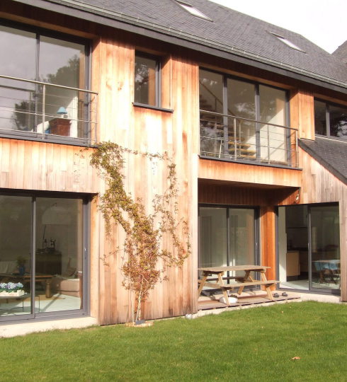 Cette gestion de l'espace intérieur permet de créer des perspectives différentes et de ne pas bloquer l'œil qui s'échappe souvent vers le jardin. L'installation de nombreuses baies vitrées de grandes