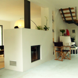 laisse passer le regard, la lumière et même la jouissance du feu côté salon et salle à manger...